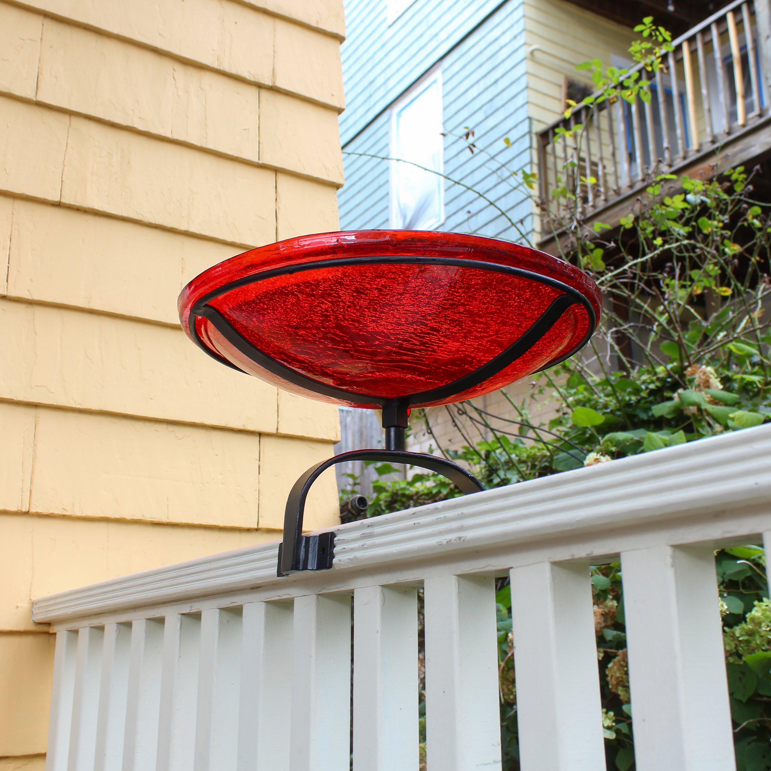 14" Crackled Glass Birdbath with Over Rail Bracket